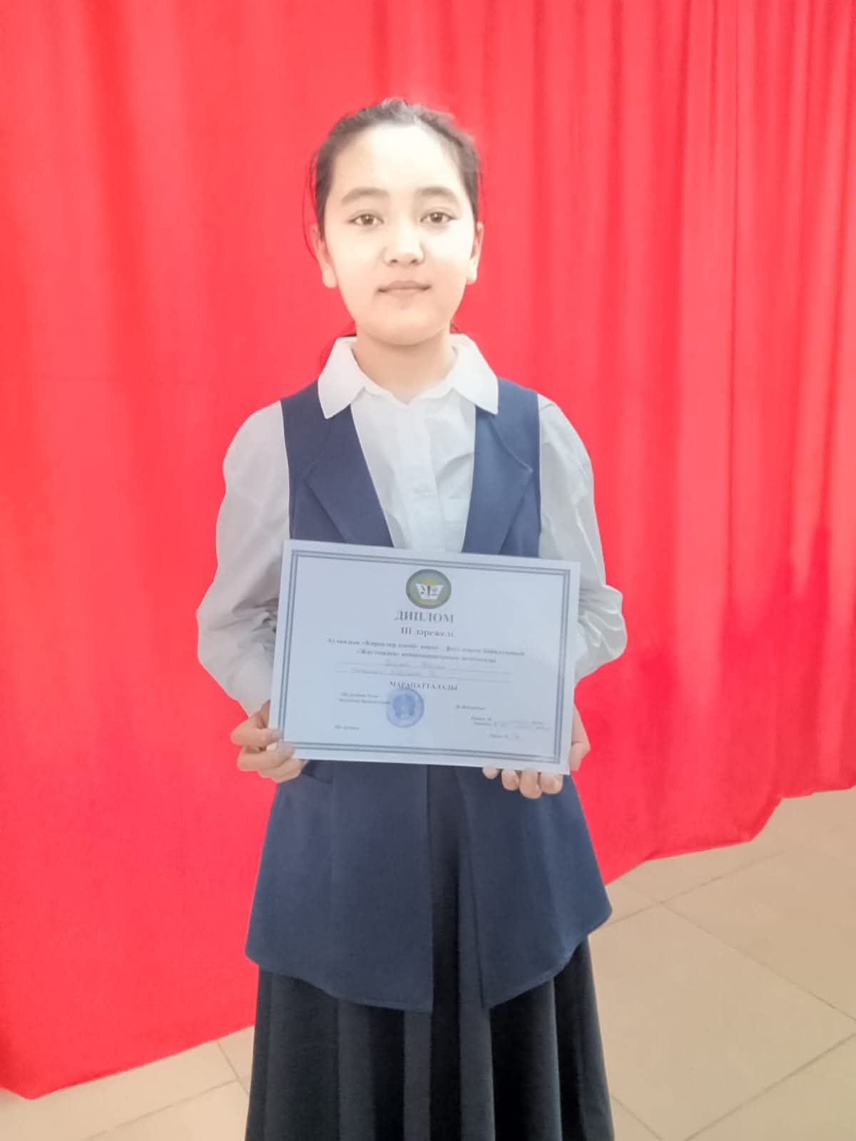 Жалпы білім беретін мектеп оқушыларының арасындағы республикалық «Ақберен» байқауының аудандық кезеңінде «Көркемсөз оқу» номинациясы бойынша дараланған 8 сынып оқушысы Бақытжан Инабат ІІІ дәрежелі дипломмен марапатталды.