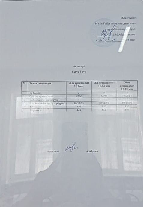Мәлік Ғабдуллин орта мектебінде бракераждық комиссия мүшелері асхананың тазалығын және ыстық тамақтың ұйымдастырылуын тексерді. Тексеру барысында асхана аумағының санитарлық талаптарға сай екені, тағам дайындау мен тарату үдерісінің белгіленген ережелерге сәйкес жүргізіліп жатқаны анықталды. Ыстық тамақтың сапасы, тағамдардың температурасы мен мәзірдің бекітілген талаптарға сәйкестігі назарға алынды.